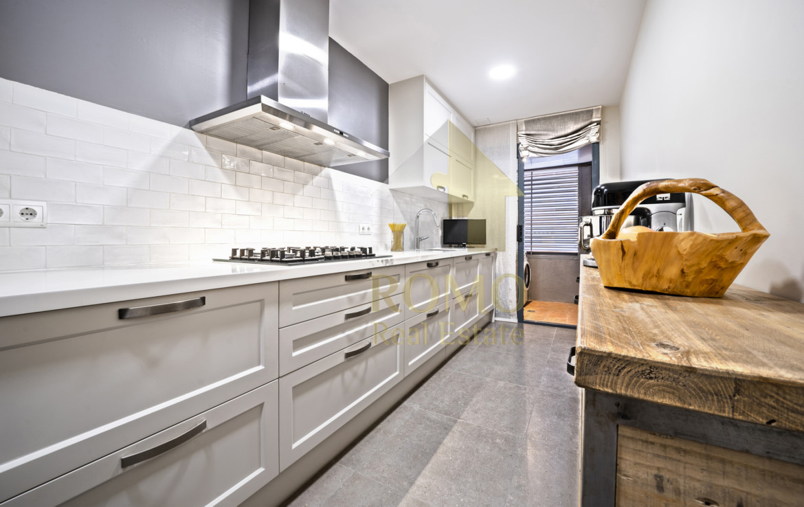 Ens deixem portar cap als altres espais de la casa, arribem a una cuina de detalls, ben ordenada i decorada amb la fusta en blanc com a protagonista ¡li dona naturalitat! Convidats pel relax arribem a la zona de nit, a les habitacions segueix aquesta sensació de calma, el dormitori suite principal a més s’obre a la terrassa amb una gran finestra de terra a sostre que permet gaudir de les impressionants vistes, els colors i els materials creen ambient, tot fusta, tons terra i beix que especialment a ultima hora del dia, donen una llum suau i vermellosa, un capvespre a Bali… ¿Viatges amb nosaltres?