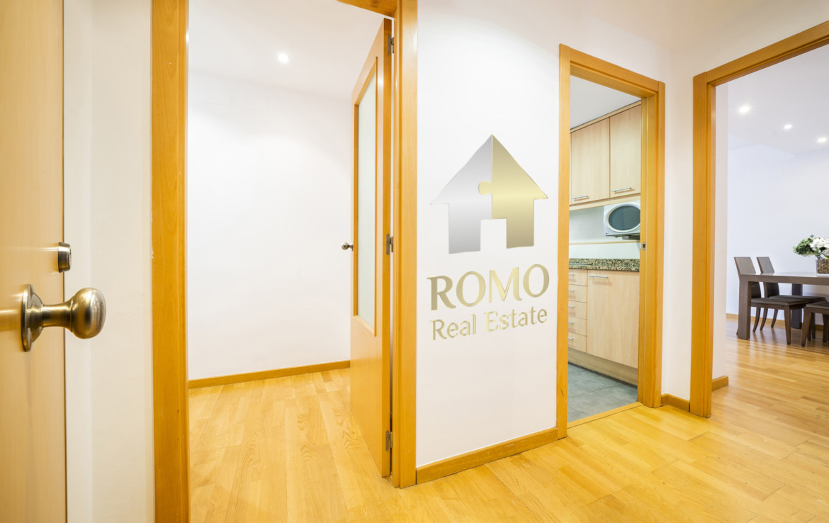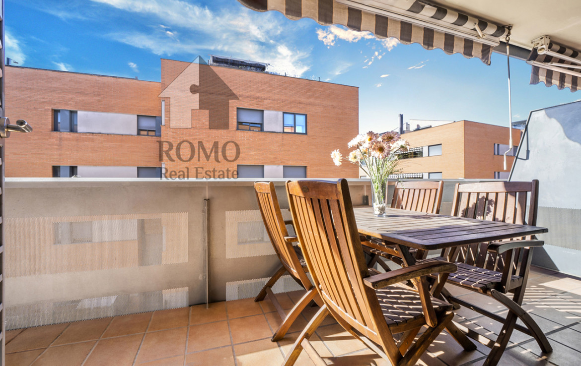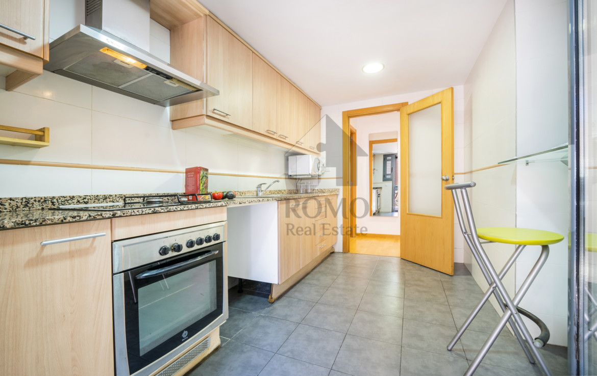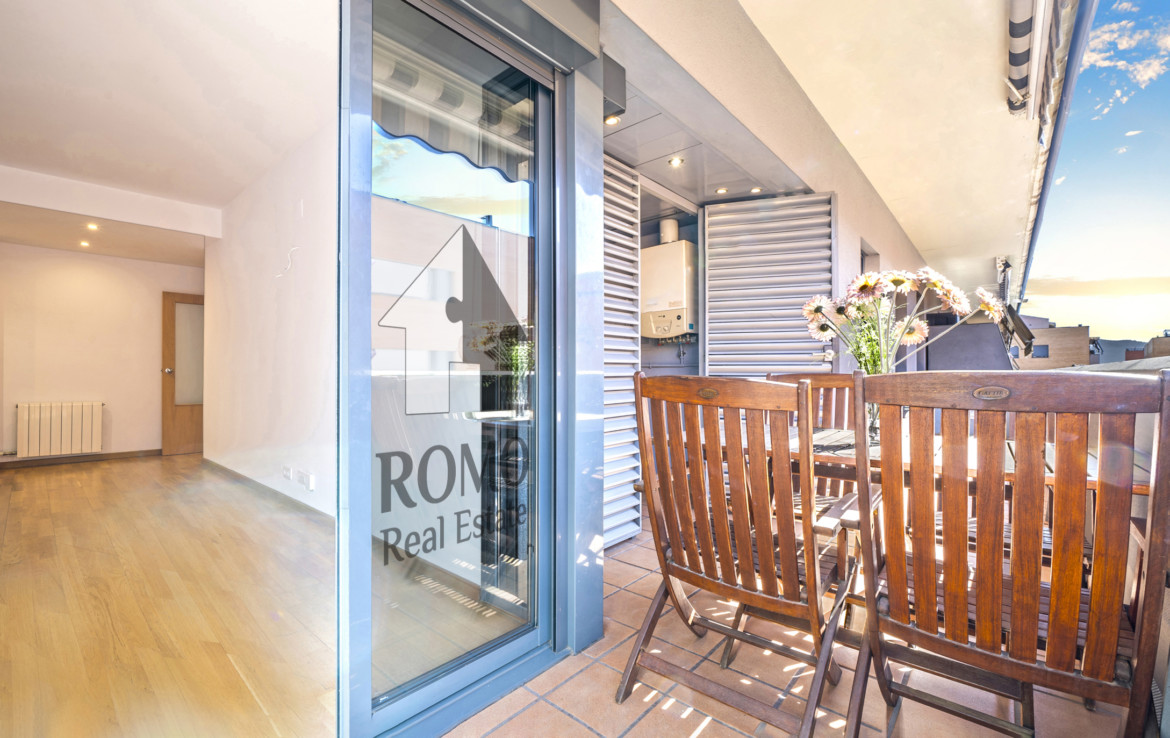 Ben organitzada consta de més de 90m2 distribuïts en saló-menjador, cuina amb office i galeria, 2 banys complets i 3 dormitoris, un d’ells suite amb vestidor ¡Ah! i un lloc de trobada, el balcó amb vocació de terrasseta, tasses de te, coca coles i xerrades fins al capvespre…