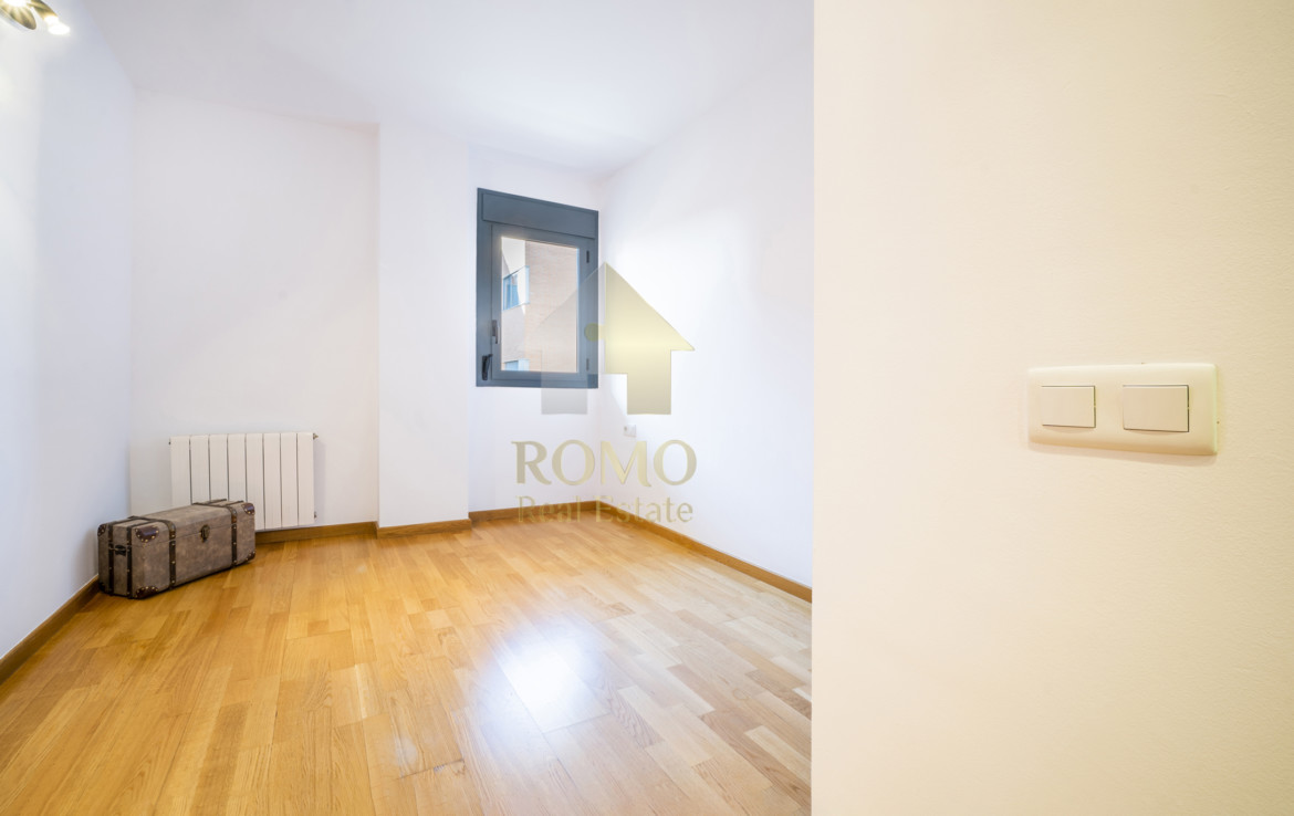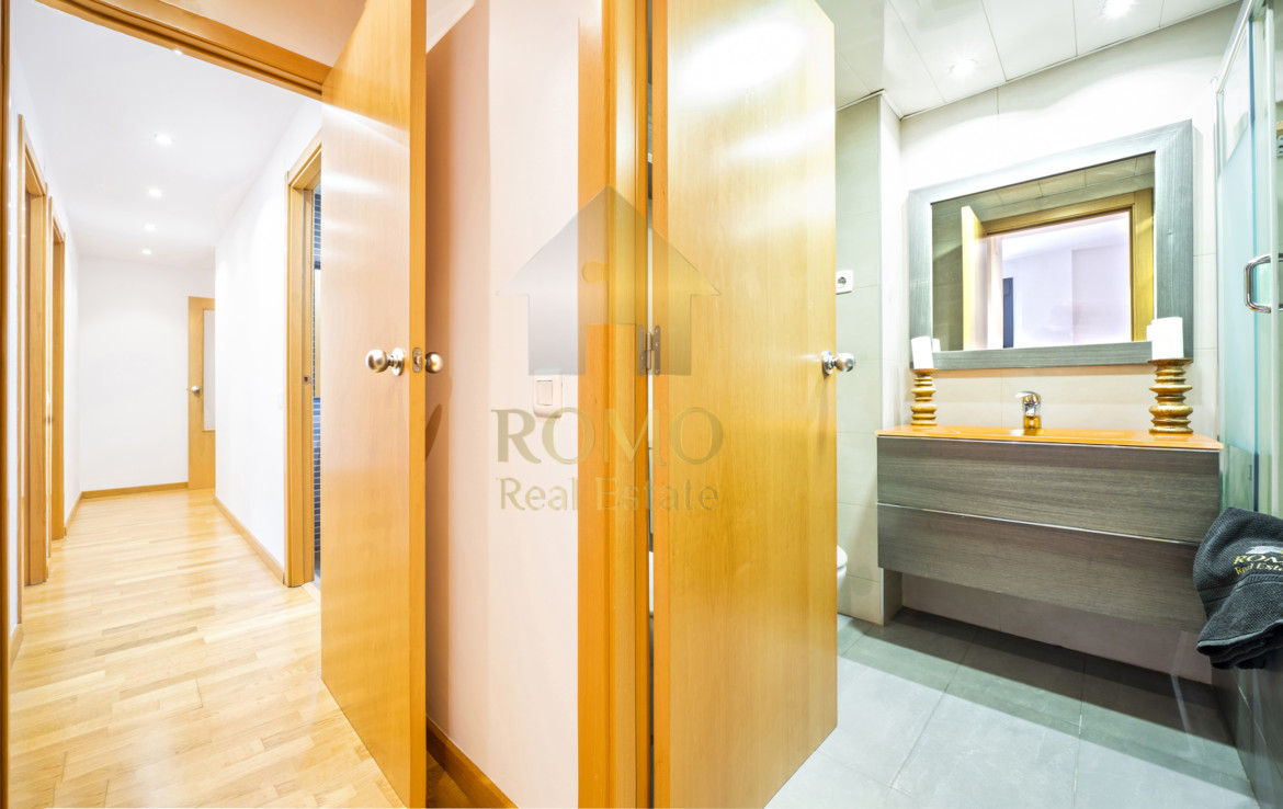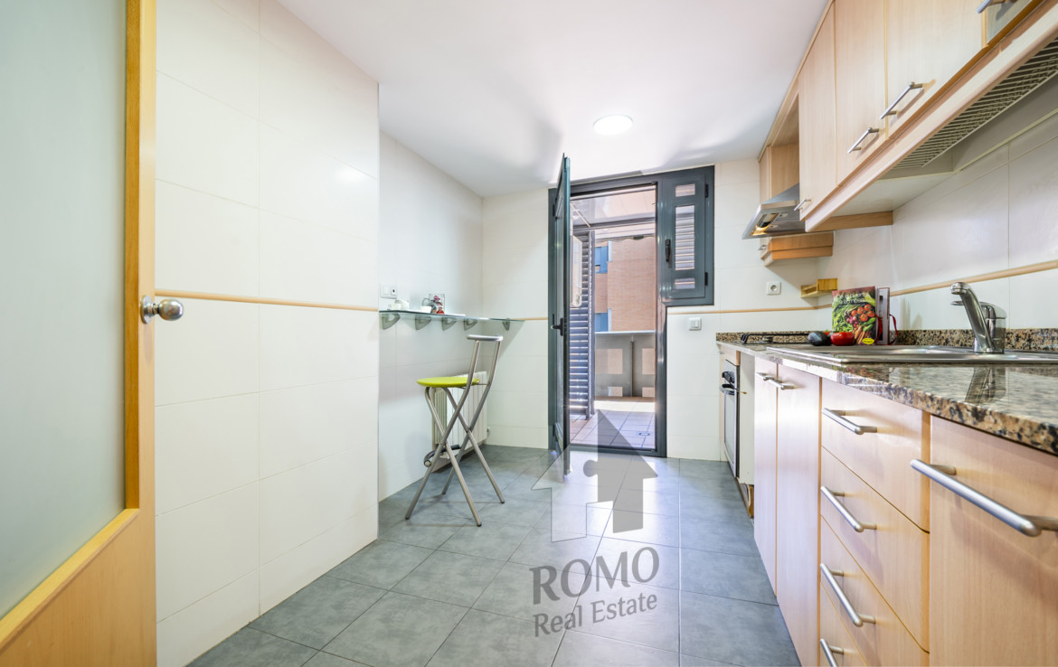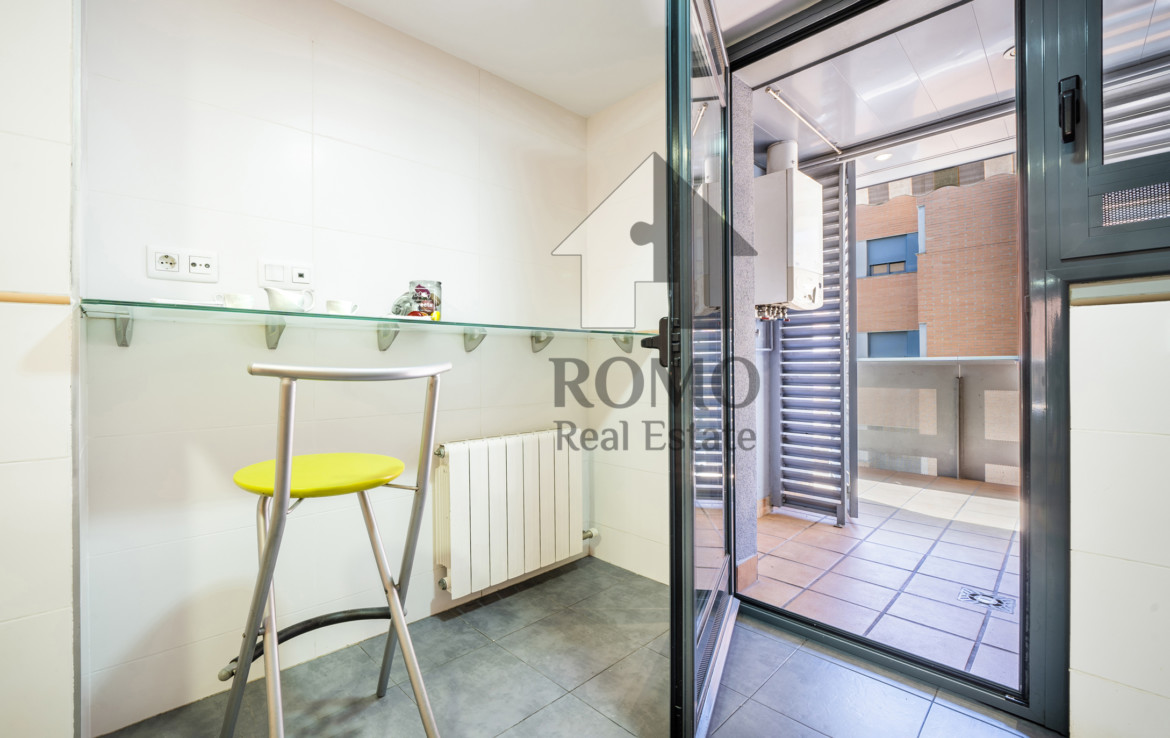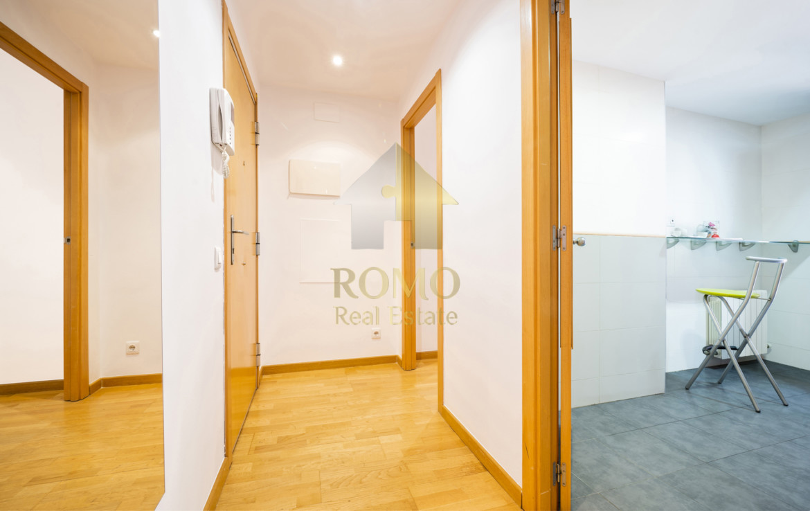 Ben organitzada consta de més de 90m2 distribuïts en saló-menjador, cuina amb office i galeria, 2 banys complets i 3 dormitoris, un d’ells suite amb vestidor ¡Ah! i un lloc de trobada, el balcó amb vocació de terrasseta, tasses de te, coca coles i xerrades fins al capvespre…