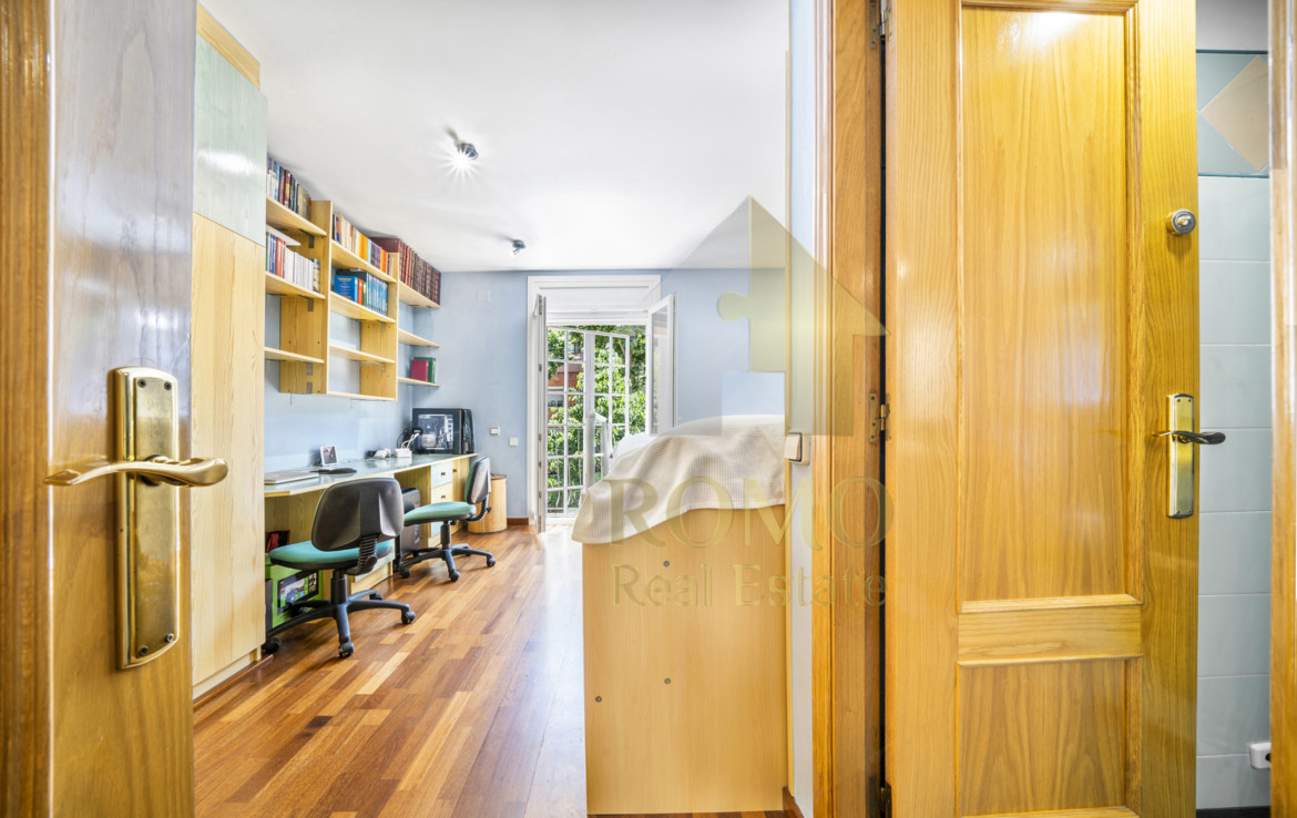 A dalt hi ha la zona de nit, on es produeix la màgia, convertim quatre possibles dormitoris en dues enormes suites amb balconada, una compte amb espai per a vestidor i a l’altra hi caben fins a taules d’estudi amb relaxades vistes al jardí ¡Sembla que estem d’hotel!