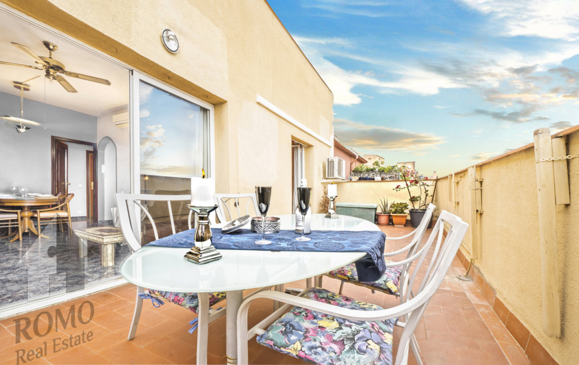 Amb el ritme Mediterrani de la ‘Ariana Zar’ ens pugem a aquest àtic i ja sentim el mariner des de terra cridar ¡Mar a la vista! Un mar que se’ns cola a casa en un look refrescant i estiuenc, siguis a l’estança que estiguis tindràs llum i vistes durant tot el dia. La nostra estada preferida com podeu imaginar és la terrassa, aquell lloc on els sopars s’allarguen fins a la matinada en un estiu etern, amb vistes màgiques sobre la ciutat comtal, el mar i la muntanya ¡el que la fa única!
