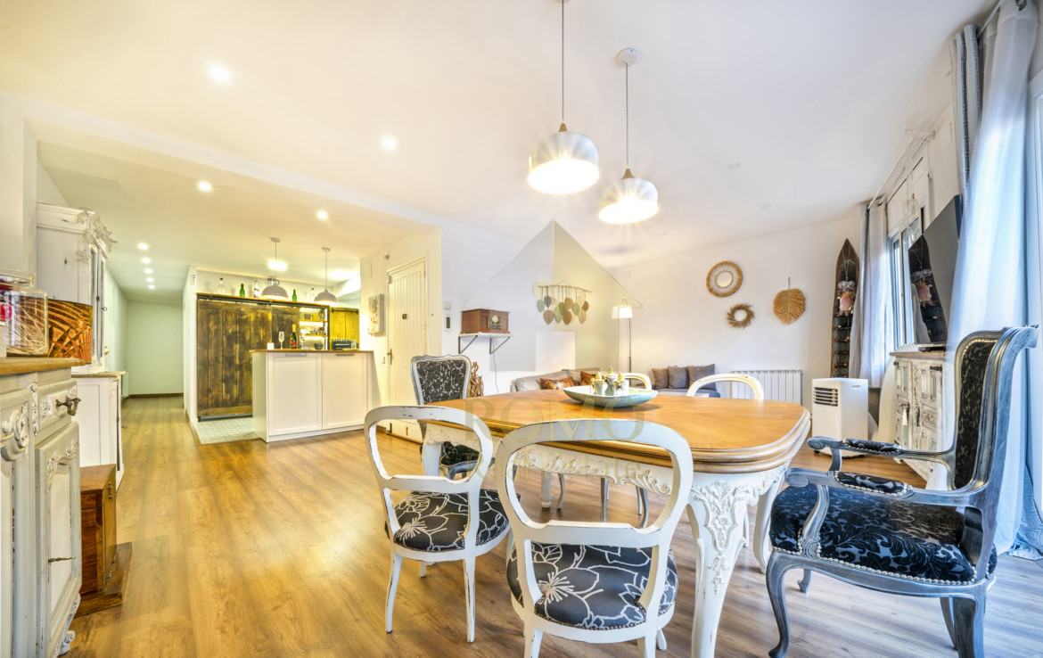 Un ambient romàntic-vintage i diàfan amb meravelloses visuals des del saló-menjador fins a la cuina ple de mobles decapats, miralls envellits, llums penjants i cadires de Lluis XIV. La clau de l’èxit és el contrast!